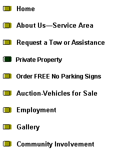 Private property tows are our specialty. Common private property examples for which tow services may be needed are:· Retail establishments (restaurants, mini-malls, shopping malls, etc.)· Apartment buildings/Condominium complexes· Fitness clubsNot only are illegally parked vehicles a nuisance, they can be dangerous, especially when they are blocking ingress/egress and/or are in a fire lane. Also, if they are in a tenant’s parking spot, they are inconveniencing that person.HOW TO REPORT AN ILLEGALLY PARKED VEHICLE:¨ BLOCKING INGRESS/EGRESS OR IS PARKED IN A FIRE LANE: CALL IMMEDIATELY¨ POSTED JON’S TOWING SIGNAGE AND A VEHICLE IS PARKED ILLEGALLY, CALL US IMMEDIATELY. If you are not an authorized person on the account, we will need to speak to a manager or authorized person on the contract. Call us anyway and we will determine what to do.¨ IF THERE IS NO SIGNAGE POSTED BUT A VEHICLE IS ILLEGALY PARKED, CALL US AND WE WILL GUIDE YOU THROUGH VARIOUS LAWFUL SOLUTIONS DEPENDING ON THE SITUATION.WE WILL TAKE CARE OF THE REST! |